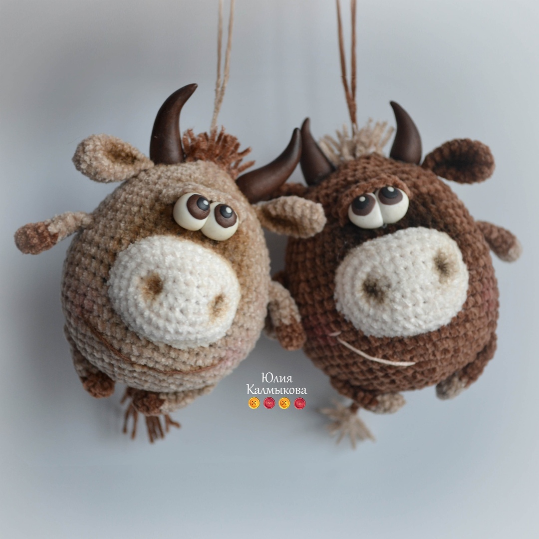 мастер-класс по очаровательным сувенирным бычкам. Мк на 21 странице пдф формата с множеством фото этапов. Игрушка простая в исполнении, и станет отличным подарком для всех. Размер игрушки при вязании из тех же материалов, что и я - 7,5 см. Тонируются привычным для вас материалом (тени, пастель, масляная краска).