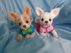 Мастер-класс по вязанию спицами щенка чихуа хуа содержит подробное описание вязания, сопровождающееся необходимыми фотографиями, для лучшего восприятия описания, а так же фото этапов. Мастер-класс рассчитан на вязальщиц с опытом, не содержит обучающих материалов. Собачка вяжется одной деталью, все формы вывязываются в процессе, пришиваются только ушки и хвостик. Цельно вязаная на проволочном каркасе, уровень: выше среднего. В мастер-класс входит описание одежды крючком. Обе собачки вяжутся по одному описанию.