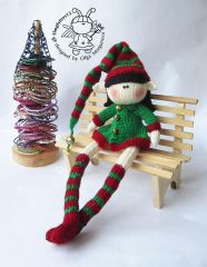 Игрушка связана по кругу на 4-х носочных спицах. Размер готового эльфа от макушки до попы - 15 см + ножки 17 см = 32 см.