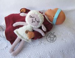 Игрушка связана по кругу на 4-х носочных спицах. Вяжется лицевой гладью. Размер игрушки 22 см