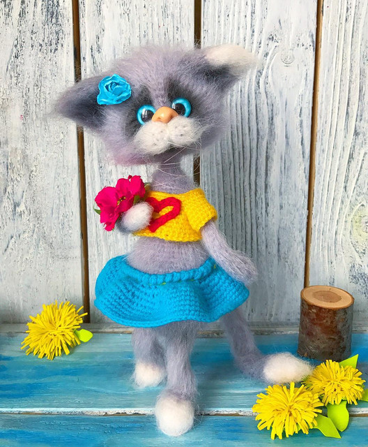 Подробное, пошаговое описание с множеством фото всех этапов по созданию кошечки ))) С названием и артикулами пряжи!