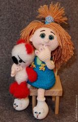 Подробное описание вязаной куклы с пошаговыми фото этапов. Это описание понравится тем, кто не любит шить. Пришивается только голова, все остальные детали крепятся в процессе вязания. Голову можно посадить на шплинт или на гаечное крепление, тогда и ее пришивать не надо.