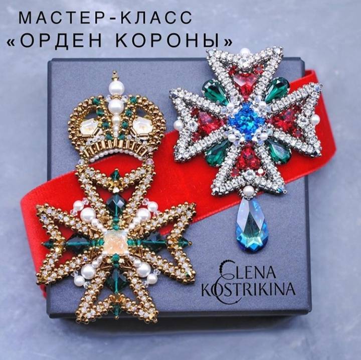 *Орден полностью плетёный из бисера и компонентов Swarovski, без использования фетра или какой-либо другой основы.