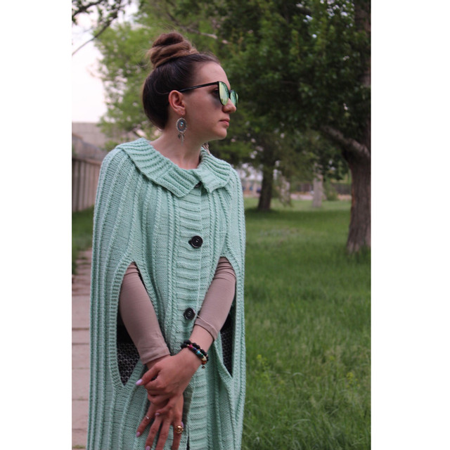 Незаменимый модный кейп, связанный спицами, согреет Вас в прохладную погоду.