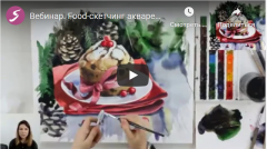 Мастер-класс по акварельному скетчингу «Рождественский кекс с клюквой» (Дарья Куцаева)