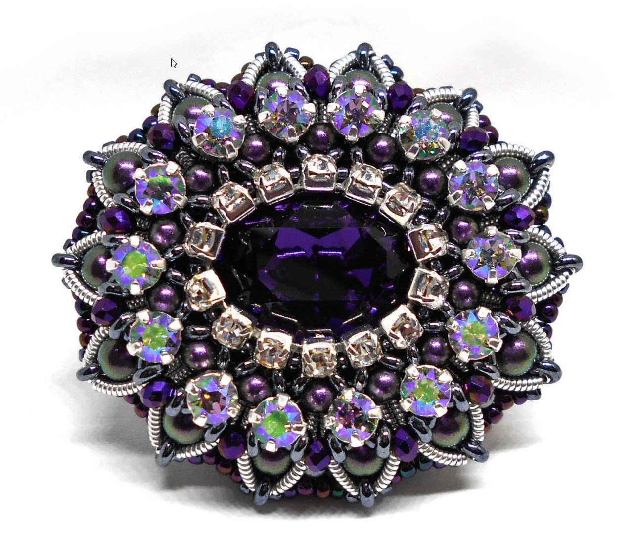 Подробный мастер-класс по изготовлению потрясающей броши на основе Oval Fancy Stone 13x18 мм в оригинальном оплетении из стразовой цепи.