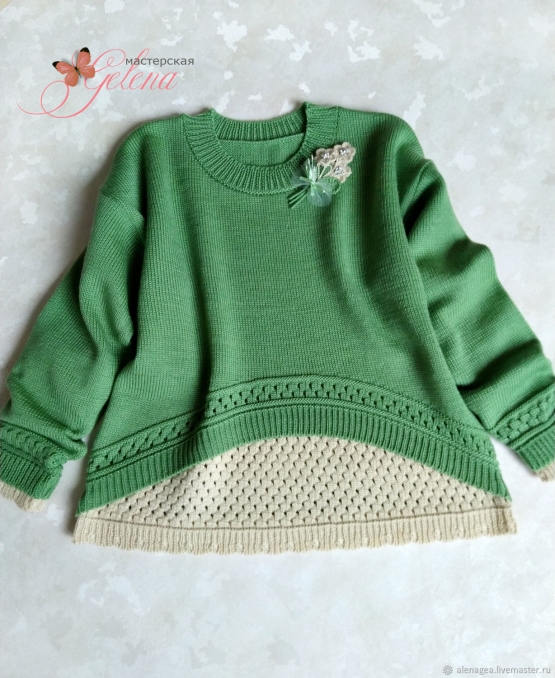 1. МК «Лесная фея» содержит 30 страниц, которые содержат выкройку, подробное описание вязания и сборки джемпера с фотографиями (126 шт.).