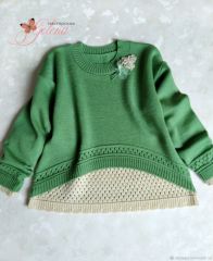 Данные МК содержат описание вязания джемпера на рост 122-128 см, ОГ – 61-63 см, длина руки- 42-44 см. Длина изделия: 44-45см