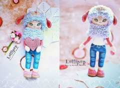 Включает в себя описания вязания тела куклы, шапки-собаки, снуда, рисование глаз.