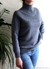 Пуловер с круглой кокеткой без видимых мест прибавления петель. Я назвала бы его 'готический'. Изделие вяжется одним полотном, без швов. Используя мастер-класс, можно связать изделие нужного Вам размера.