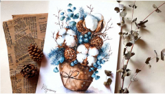 В этом видео уроке рисования акварелью Юлия предлагает вам поучиться акварели и вместе с ней нарисовать чудесный атмосферный зимний букет с веточками хлопка, шишками и ягодами!
