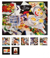 40 карт-картинок с едой и ситуациями взаимодействия еда-человек «условно хорошими»