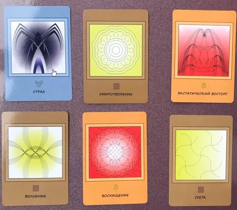 Елена Кораблева – практический психолог с 18-летним стажем консультативной работы и ведения психологических тренингов. Занятия йогой и духовные практики в Индии, в Ашраме Шри Ауробиндо в Гималаях позволили автору найти и систематизировать зрительные архетипические образы чувств и эмоций, которые впоследствии были представлены в виде графических изображений и размещены на картах.