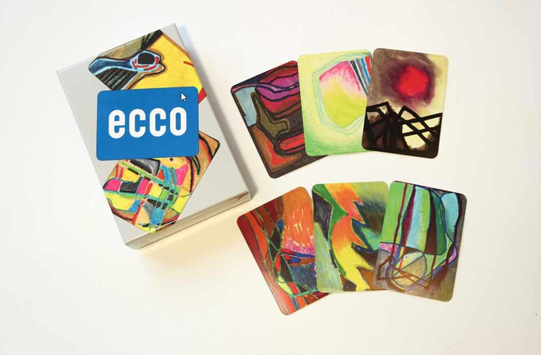 В итальянском «ecco» означает «Смотрите! Созерцайте!» Эта колода из 99 абстрактных карт, была нарисована J.D. Ellis, чтобы мы всмотрелись в цвета, формы, образы. Здесь нет никаких названий и никаких правильных значений. Каждый из нас видит что-то свое. «ECCO» – вызов для воображения, трамплин в искусство, путешествие в мир фантазии. Создайте ваши собственные выставки, опишите изображения как пейзажи или мечты. Как и все карты, картинки ECCO хорошо объединяется со словами «О-КАРТ», или с картинками из других колод. Изображения «ECCO» приглашают нас продолжить их и нарисовать наши собственные большие картины.