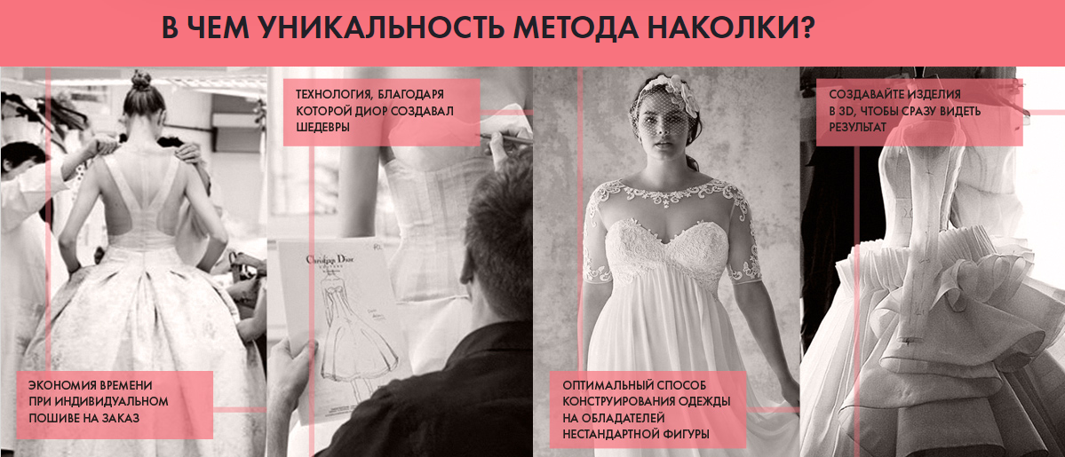 Варианты накалывания основных форм платья: облегающие платья, расклешенное платья, платье отрезное по талии, платье с заниженной или завышенной талии.