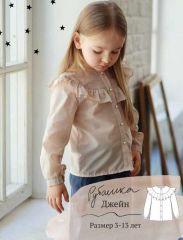 Детская блуза Джейн прямого силуэта. Длинные втачные рукава с манжетами на пуговице. Округлый вырез горловины обработан обтачкой. Застежка по полочке - планка с пуговицами.