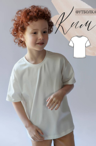 Базовая детская футболка. Объем оверсайз. Силуэт прямой. Вырез горловины. округлый, обработан бейкой. Втачные рукава. Длина футболки до середины бедра.