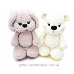 Мастер-класс в формате PDF содержит 46 страниц описание вязания очаровательной собачки Сони и милейшего мишки Умки, а также рекомендации по сборке, утяжкам, оформлению. У Вас также будет возможность связать 2 варианта ушек для собачки. Описание подкреплено 176 фотографиями. МК не содержит описания вязания одежды!