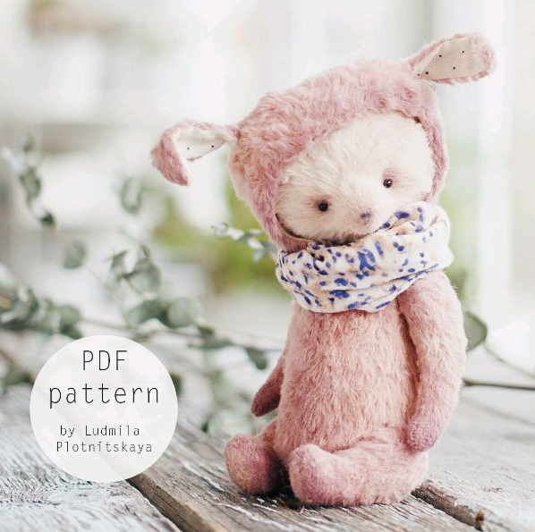 По этой выкройке у вас получится мишки тедди в шапочке зайчика высотой около 14 см.