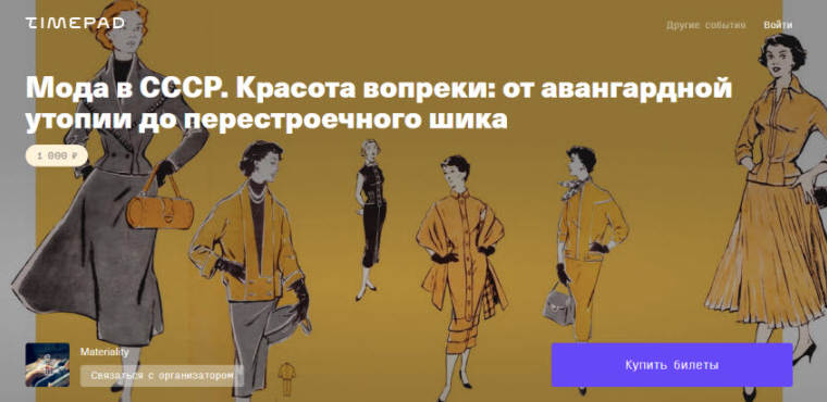 Исследователь моды Тим Ильясов расскажет о недоступной красоте советской моды, которая все ж существовала, но не для всех. Участники лекции узнают о моде авангарда 1920-х, о советском нью-луке, стилягах, гардеробах звезд и первых лиц государства, о художниках-модельерах, творивших в среде бесконечных ограничений, и судьбах манекенщиц социалистического подиума.