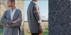 Дизайнер выбрала для своего пальто твидовую пряжу Brooklyn Tweed Shelter [100% шерсть колумбийской овцы тарги; длиной 140 ярдов или 128 метров в 50 граммах]. Твиды от Бруклин уже относятся к категории фаворитов среди вязальщиц зарубежом, да и у нас уже многие 'подсели', в любом случае, сейчас на рынке большое многообразие твидов, брать оригинал или подыскать альтернативу, решать вам. В-общем, нас интересует твид средней толщины. Всего необходимо 10 (11, 12, 13, 14) (15, 16, 17, 19) мотков такой пряжи. Цвет твида для пальто на фото Barn Owl (серо-коричневый, если дословно то амбарная сова или сова сивуха, итак, выискиваем сивуху или подбираем свой цвет, в этом году дизайнеры отдают предпочтение нейтральным или сдержанно глубоким оттенкам).