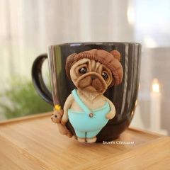 Мопс висящий на краю и мопс с мишкой (vseisgliny)