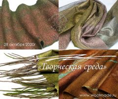 В декоре шарфа будем использовать волокна матовой и глянцевой вискозы, маргиланский и другой шелк, нити, слабсы, префельт...
