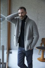 Роскошный жакет для вашего шикарного мужчины. Жакет вяжется спицами отдельными деталями снизу вверх. Инновационная конструкция петли для пуговицы создает уникальную и прочную петлю. Для кармана петли поднимаются из полотна.