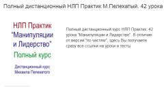 НЛП Практик. 'Манипуляции и лидерство'. Полный дистанционный курс Михаила Пелехатого. 42 урока