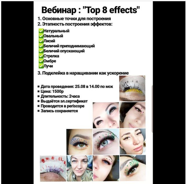 Вебинар по основным эффектам в наращивании ресниц от лучшего лешмейкера России Юлии Ведровой!