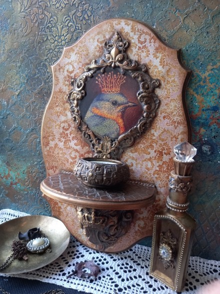 Чудесный подсвечник для стены с королевской птичкой в стиле 'винтаж'.