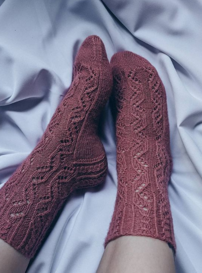 Интересный клин пятки, легко запоминающийся, но изящный узор... Все это в этих носочках...
