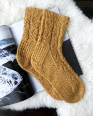 • Классическая носочная пряжа (Schachenmayr Regia, Grundl Hot Socks, Austermann и другие, их много. Очень важно, чтобы в составе был полиамид 20-30 % для прочности носочков), метраж 50 грамм - 200-210 метров, расход: от 70-ти грамм. Плотность лицевой глади после ВТО: 32 петли - 10 см. Спицы 2-2,5 мм. Универсальный женский размер;