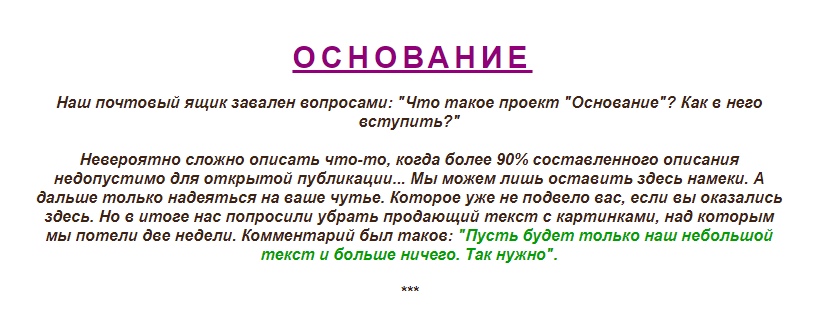 Как ты уже заметил, мы ходим вокруг да около, но так и не можем четко выразить, что тебя ждет в 'Основании'. Потому что нельзя говорить об этом публично. Пока еще. Поэтому тебе остается лишь довериться своим ощущениям.