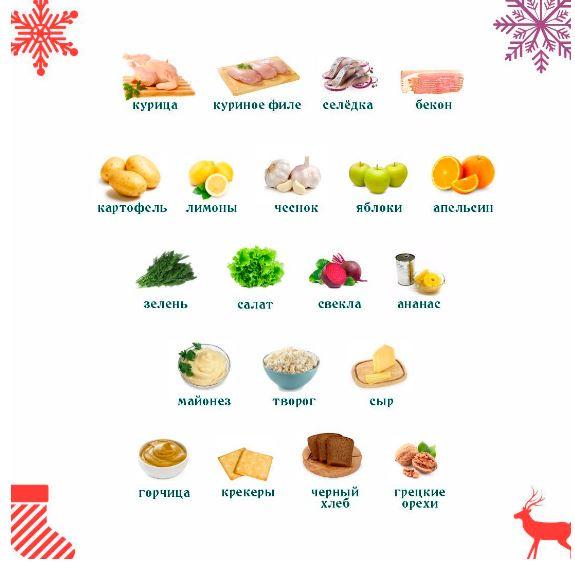 Выбирайте меню по продуктам, мы нарисовали их на картинках.