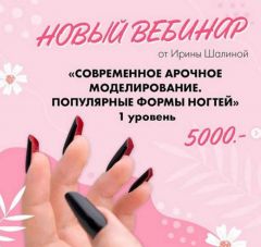 Сегодня, 6 марта,стартовала предпродажа моего вебинара «Современное арочное моделирование. Популярные формы ногтей» 1 уровень