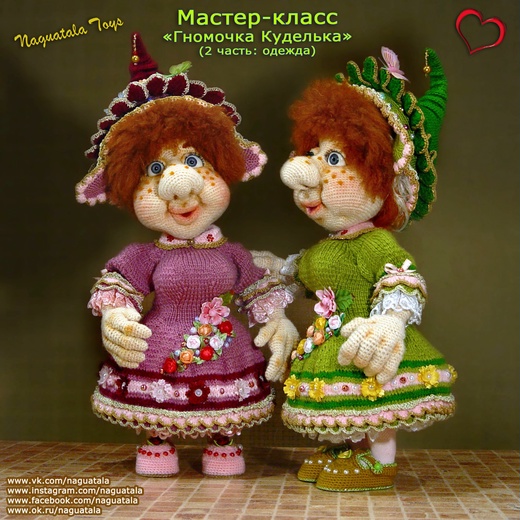 Мастер - Класс по вязанию волшебной Гномочки Кудельки (2 часть: одежда). МК состоит из 106 листов и 403 фотографий высокого качества. Сложность мастер–класса средняя. Гномочка Куделька высотой 39см. Можно вязать из тех материалов, что указаны в МК или выбрать пряжу на своё усмотрение, но тогда и рост куклы, и размер одежды получится д