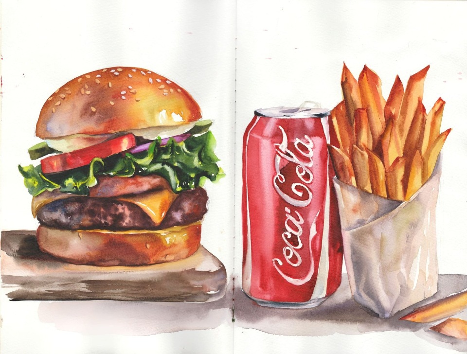 Пишем стандартный американский fast food набор и пока рисуем, ждем доставку из Макдональдс
