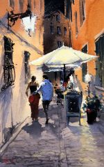Узкая брусчатая улочка, ажурные решетки на окнах и несколько маленьких столиков. Мимо кафе неспешным шагом прогуливается влюбленная пара. И все это освещает уже хорошо знакомыи? нам уличныи? фонарь. Вы тоже слышите звуки аккордеона и улавливаете витающии? в воздухе аромат свежесваренного кофе?