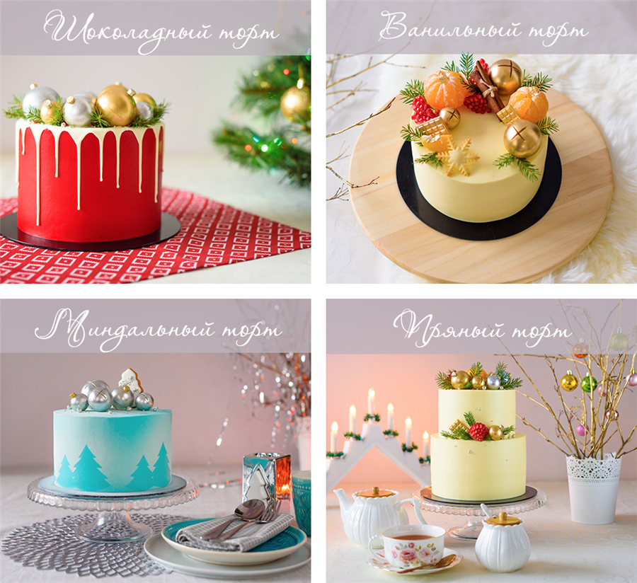 В программе курса 4 бисквитных торта с новогодними вкусами: