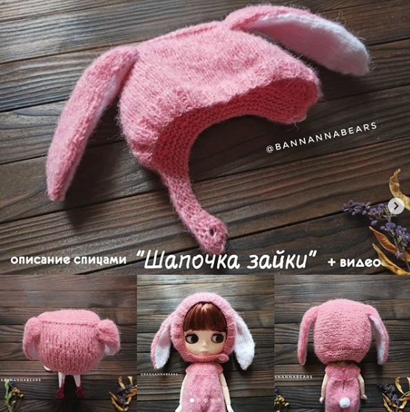 Описание вязания спицами Шапочка зайки для Блайз (bannannabears.pattern)