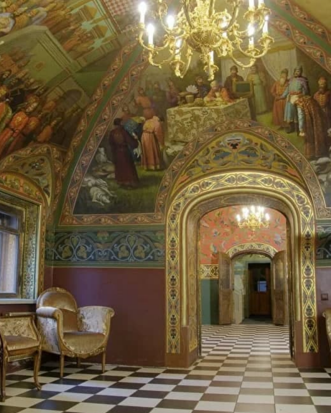 • оценим чудесные интерьеры 19 века, оформленные при непосредственном участии великосветской красавицы княгини Зинаиды Юсуповой на сводах древних палат 17 века