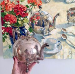 • Научимся передавать фактуру металла, обсудим какие краски лучше смешивать, чтобы получать разные оттенки серебристых предметов.