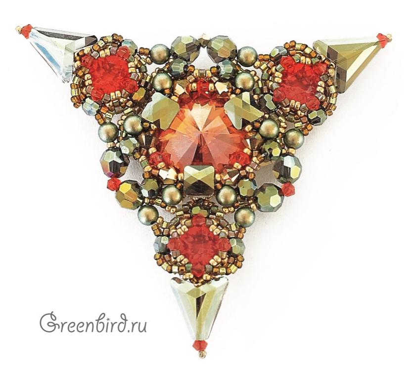 Вы покупаете инструкцию в формате .pdf с пошаговыми фотографиями и схемами, следуя которым вы научитесь оплетать кристалл Swarovski 1122 Round Rivoli 18 мм и 1088 Chaton SS39. Вы соедините получившиеся элементы вместе в эффектный треугольник, который можно оформить в кулон, просто приделав петельку для цепочки.