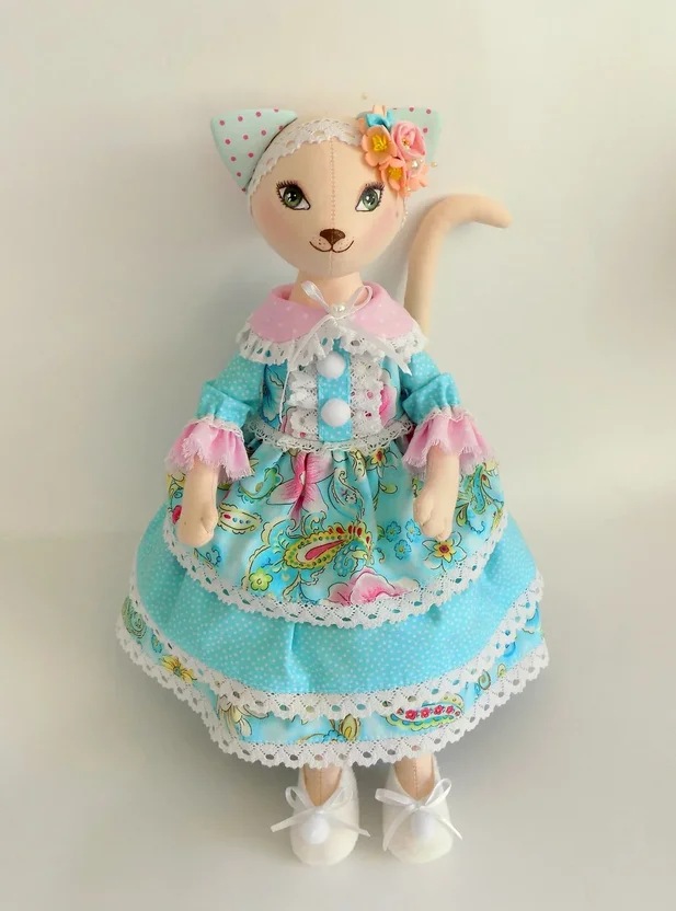 Приглашаем Вас сшить очаровательную девочку-кису по имени Анфиса. Ростом она 40 см. За четыре занятия Вы получите такой же результат как на картинке.