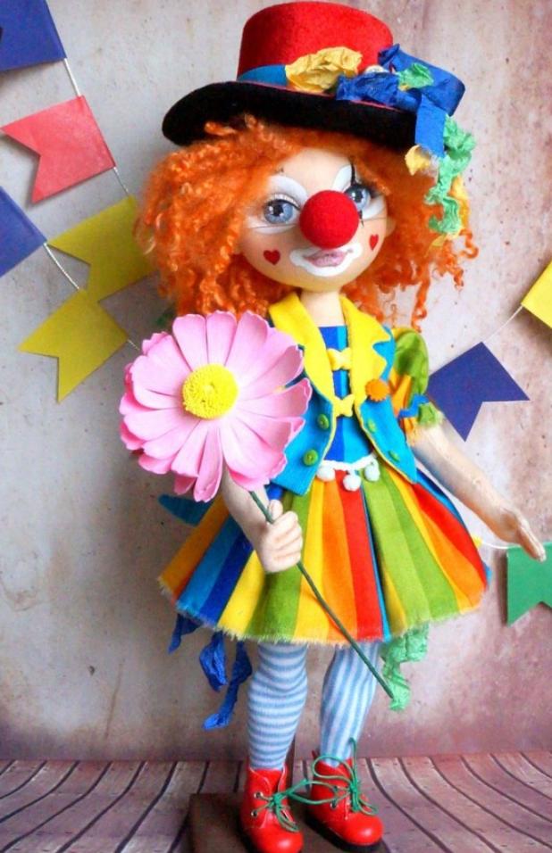 Приглашаем Вас сшить под руководством мастера великолепную Клоунессу. Рост куколки без шляпы 36 см. За 4 занятия вы сошьете тело куклы, полностью обтяните его трикотажем и сделаете утяжку, создадите яркий необыкновенный наряд и побудете настоящими гримерами!