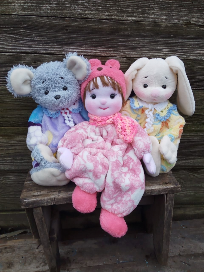В этот кармашек можно прятать пижамку на день, и, тогда игрушка становится пухленькой, и с ней очень приятно играть. А на ночь в такую игрушку можно прятать маленькую бутылочку с теплой водой или мешочек с прогретой солью, и, тогда мягкий друг будет еще и очень тепленький, и с ним ваш малыш будет с удовольствием засыпать в обнимку. А можно пришить лямочки и брать ее с собой в путешествия. Игрушка будет надежно хранить секреты вашего малыша и приносить ему большую радость.