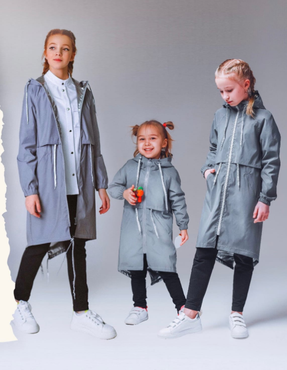 • Ткань – курточные ткани, у нас сшит из светоотражающей плащевки, подклад – фольгированный, все ткани