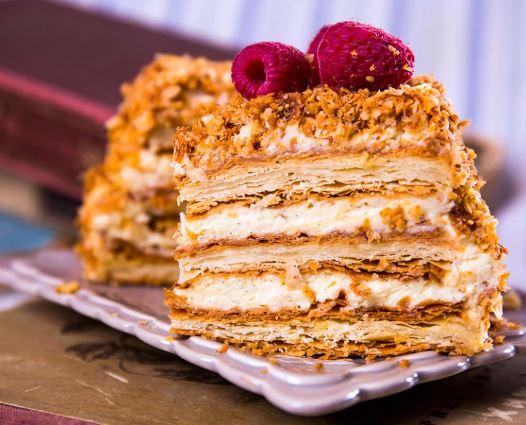 Что же мы, получим в итоге: рассыпчатое на тысячи лепестков карамелизированное слоеное тесто и нежнейший, как шелк, ванильный заварной крем.