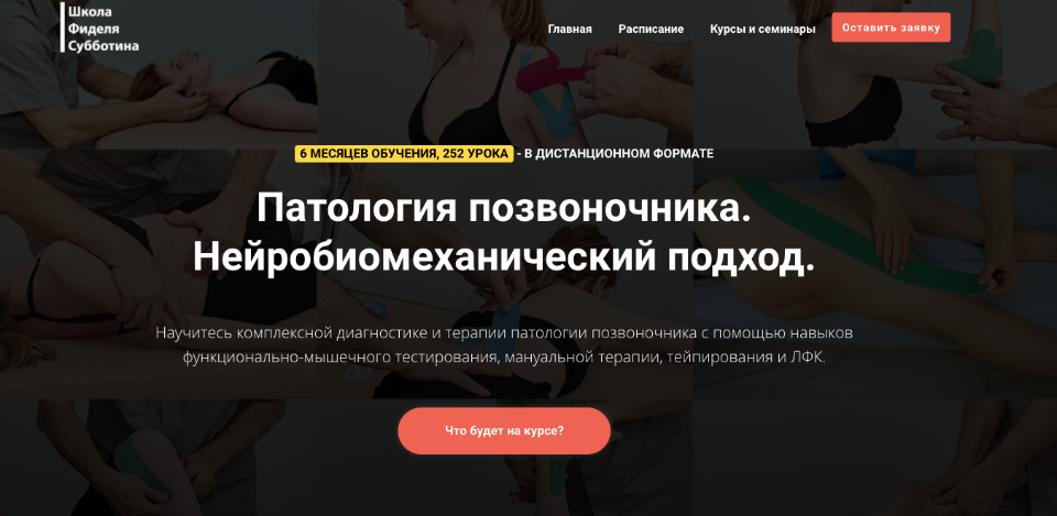 Программа дистанционного курса Курс 'Патология позвоночника. Нейробиомеханический подход' состоит из 6 тематических модулей, длительность обучения на каждом из них - 1 месяц. Модули курса содержат набор теоретических и практических уроков.